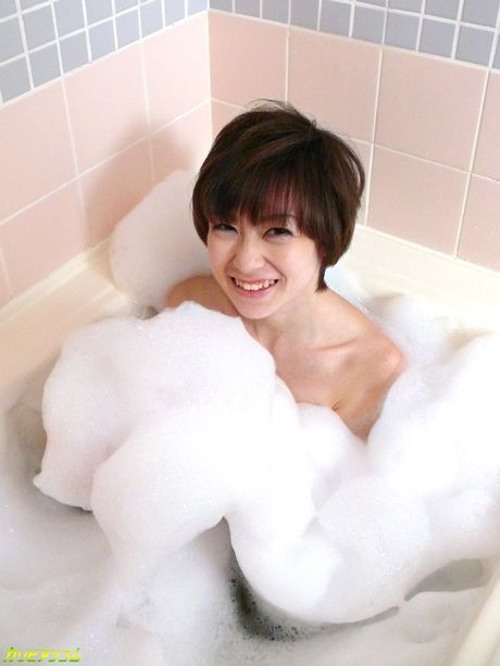 Jav HD: Akina Hara Asian sucks and licks shlong in full of soap bathtub
