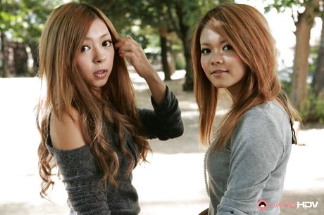 Japan HDV: Amazing girls Tsubasa and Kanon in shorts enjoy some playful lesbian foreplay outside