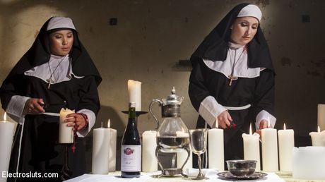 Electro Ssluts: Asian lesbians Mia Little & Sophia Locke toying each others holes
