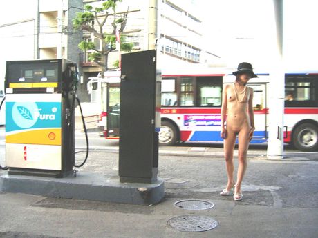 City Invasion: Asian schoolgirl strips and shows her tiny tits and pussy in the park