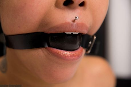 Club Leather Restrained: Asian teen amateur girl shows her tiny tits and pierced nipples in a solo