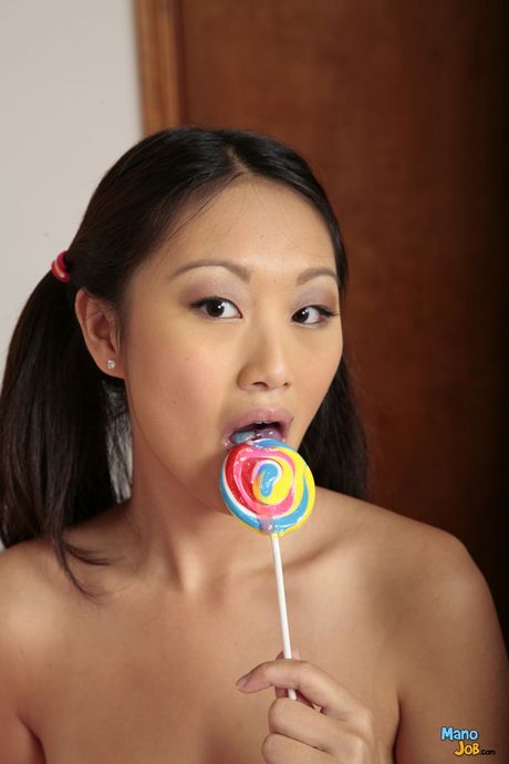 Mano Job: Asian teen Evelin strips and toys her pussy with a dildo in a solo scene