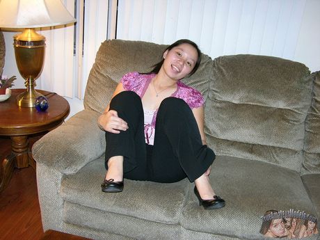 True Amateur Models: Asian teen Selina strips and shows her big melons and ass in a solo