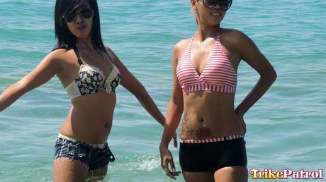 Trike Patrol: Asian teens Shanelle and Bubbles flaunt their big bootyes and tits outdoors