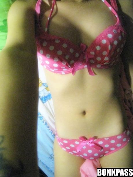 Bonk My Chinese: China teen girl in sexy pink colored polka dot bikini
