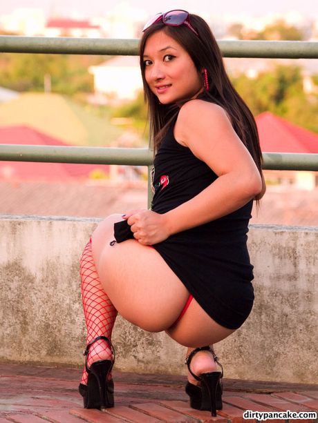 Pancake: Dirty Pancake flashes her half Asian pussy outside