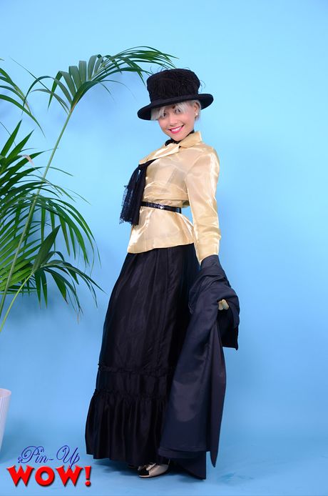 Pin Up Wow: Fantastic Asian Petra strips to her stockings and heels and shows her hot ass