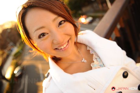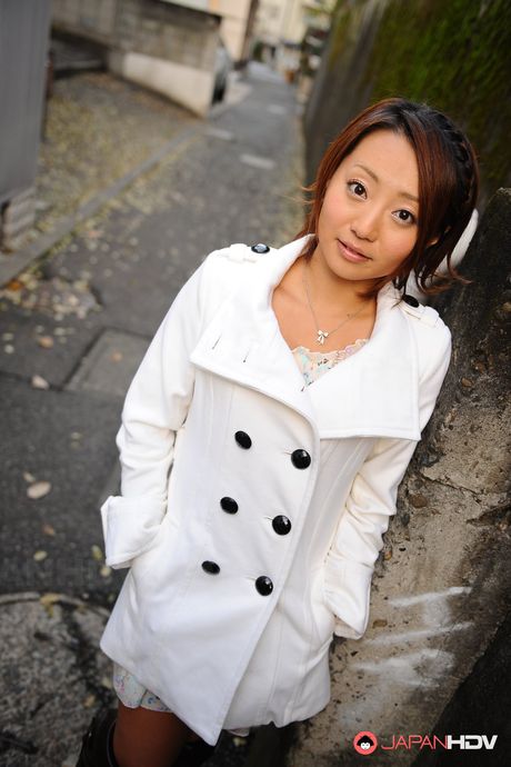 Japan HDV: Handsome babe You Shiraishi poses outdoor in her white coat for camera