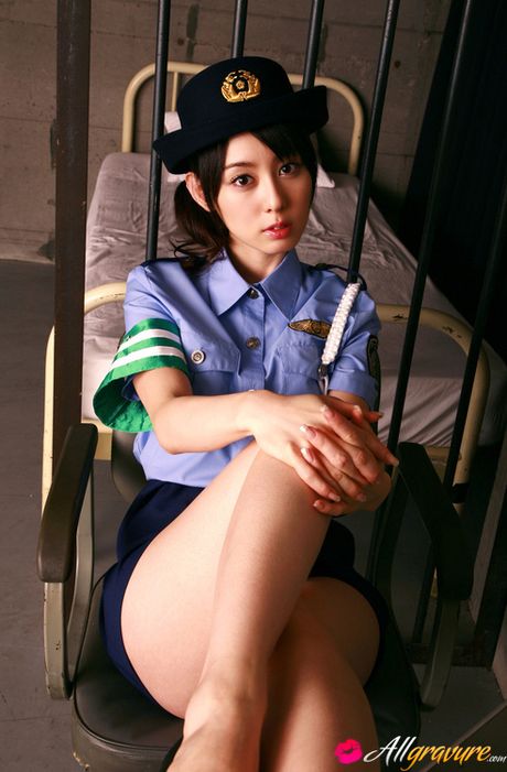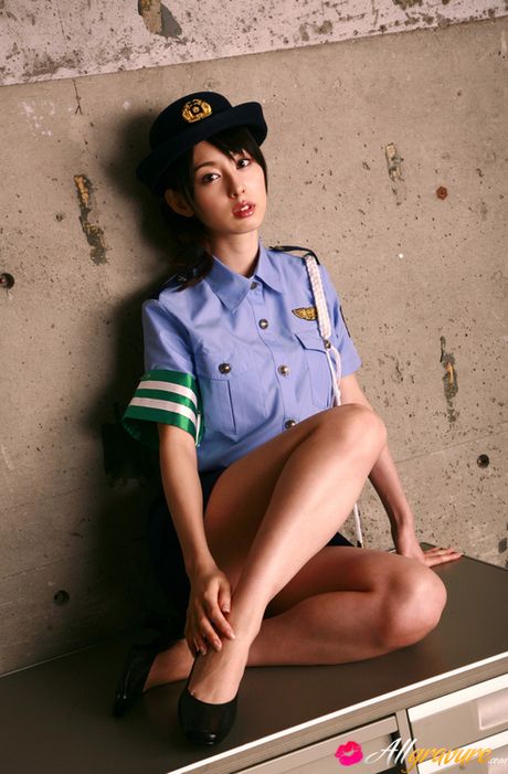 All Gravure: Rina Akiyama Asian in police woman uniform exposes sexy legs