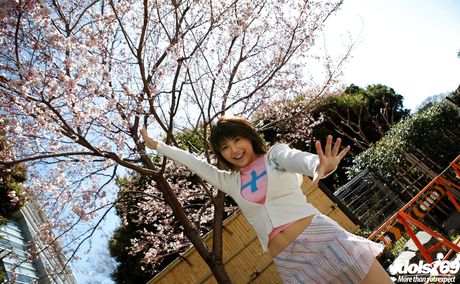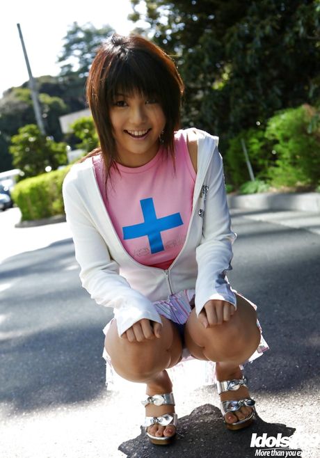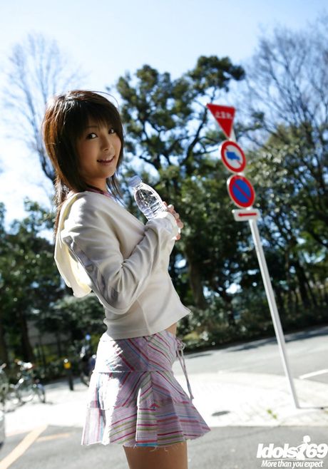 Idols 69: Slender japanese brunette teen Azumi Harusaki in fancy skirt shows her butt