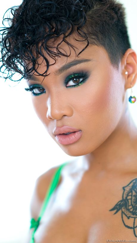Twistys: Sultry asian bombshell Yasemin Gold exhibits her butt in undies and pussy