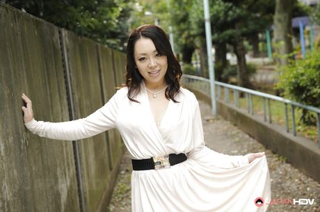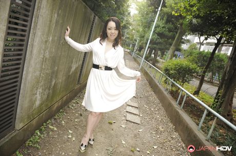 Japan HDV: Superb japanese dark-haired cutie Yuna Yamami in hot erotic scene outside