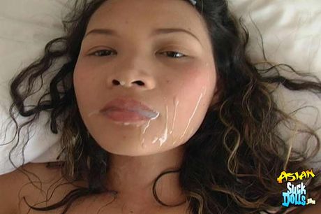 Asian Suck Dolls: Tight body Thai teen with hairy pussy sucks fucks and gets a big facial